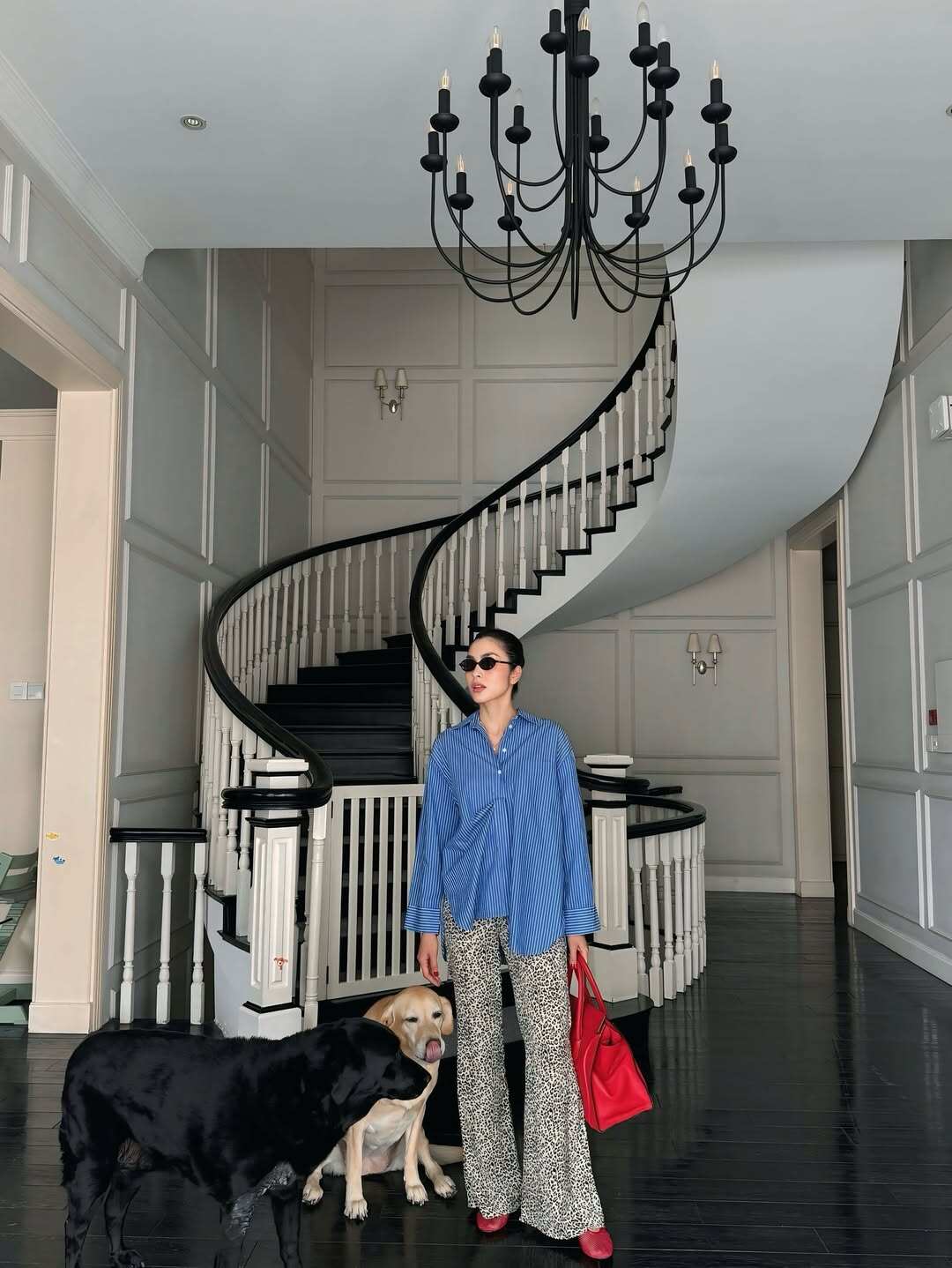 Cô cũng lựa chọn phong cách ăn diện giản dị, thường xuyên sánh đôi bên chồng.