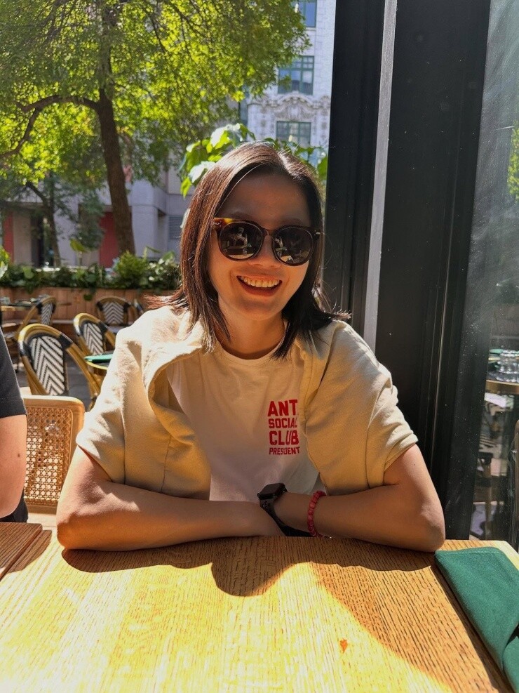 Hiện Vân Anh làm việc cho một hãng thời trang chuyên về quần áo thể thao ở thị trường Mỹ và Canada.