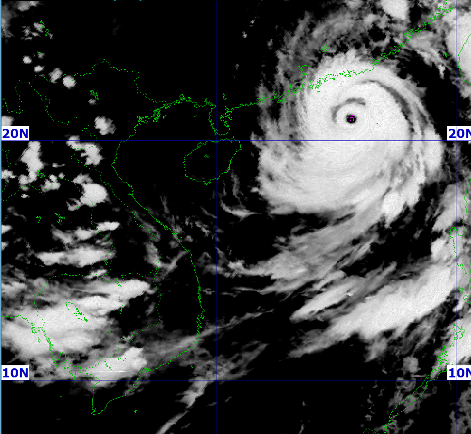 Đến 7 giờ ngày 25.9, vị trí tâm bão ở khoảng 21,5 độ vĩ bắc; 108,8 độ kinh đông, trên vùng biển tỉnh Quảng Ninh - Hải Phòng. Cường độ mạnh cấp 10-11, giật cấp 13.