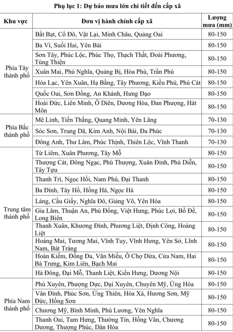 Phía Bắc thành phố: 70-130mm, có nơi trên 200mm.