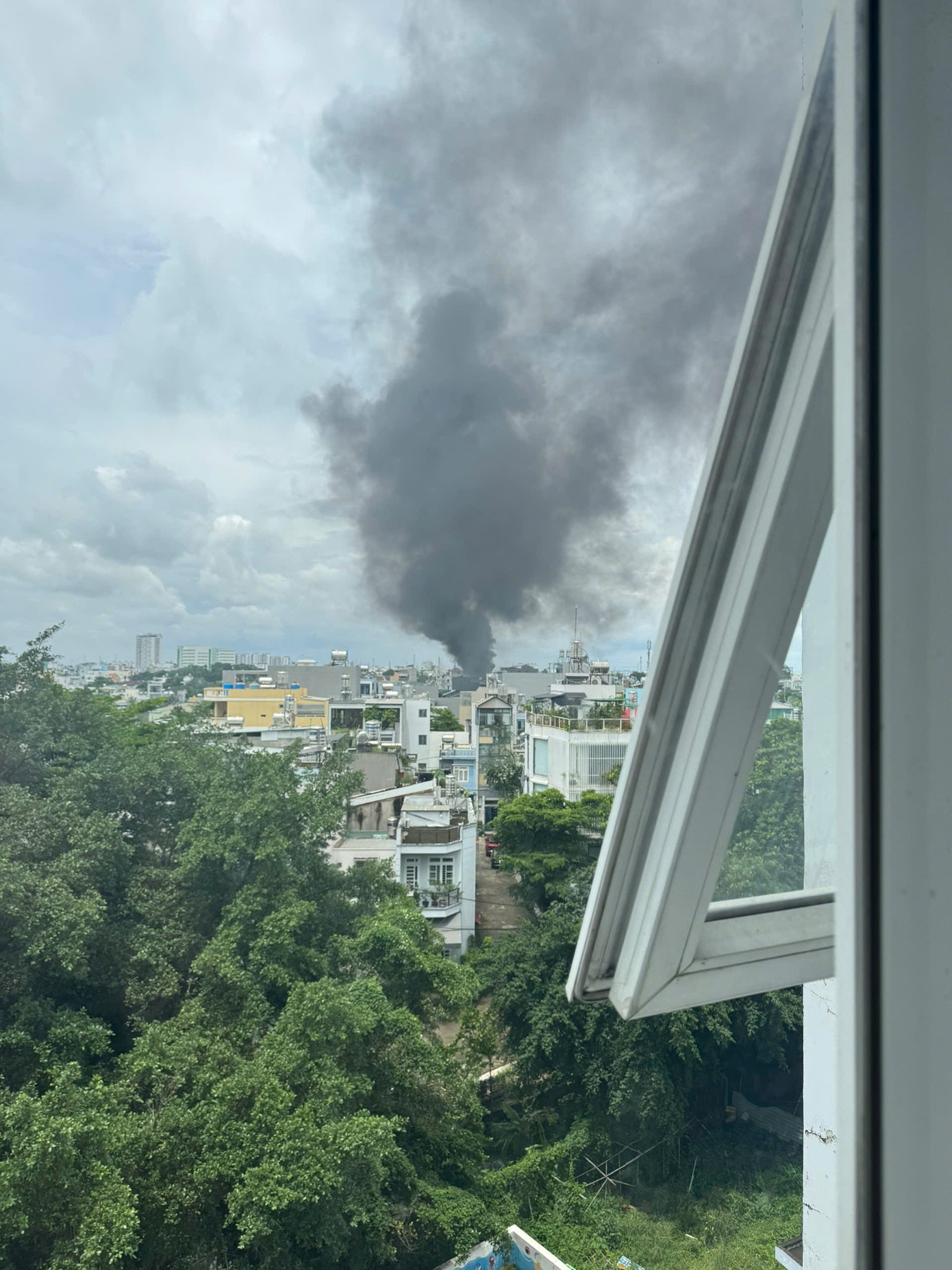 Chị Thanh Phương, ngụ tại chung cư An Phú Đông - cách hiện trường vụ cháy 500 mét hoảng hốt khi nghe những tiếng nổ lớn, nhìn qua cửa sổ thì thấy cột khói đen cao hàng chục mét.