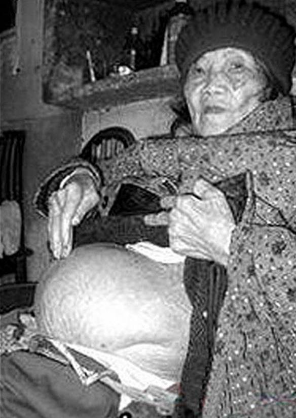 Cụ bà Huang Yijun, 92 tuổi ở Trung Quốc được phát hiện mang thai đá gần 60 năm. Ảnh: nigerianmonitor
