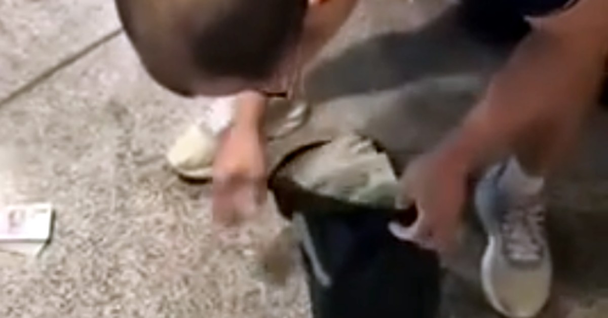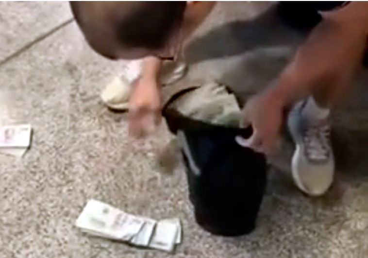Theo đoạn quay, khoảng 5 - 6 người liên tục giằng co quanh những túi tiền lớn. Trong lúc hỗn loạn, tiền mặt rơi vung vãi khắp nền nhà. Một số người cúi xuống nhặt không kịp, trong khi phía còn lại liên tục la hét, yêu cầu gọi công an.