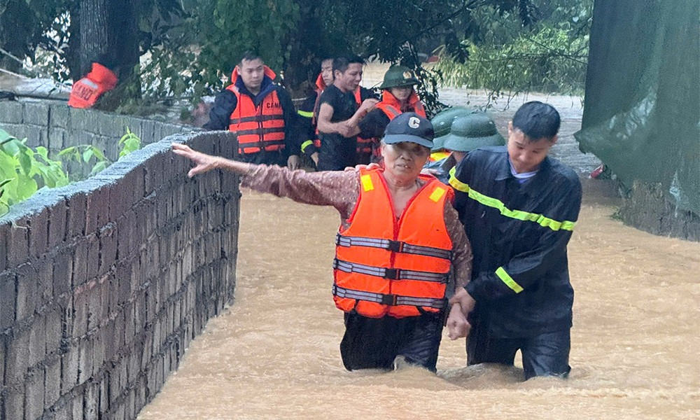 Báo VietNamNet cho biết thêm, khoảng 5h30 cùng ngày, Phòng Cảnh sát PCCC và CNCH đã tiếp nhận tin báo khẩn cấp từ người dân. Nội dung tin báo cho biết một gia đình đang bị mắc kẹt hoàn toàn trong nhà do nước lũ dâng cao và bao vây khu vực.