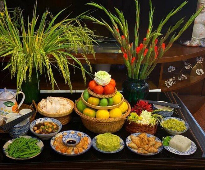 Lễ vật dâng bàn thờ không bắt buộc phải cầu kỳ. Chỉ cần hoa tươi, trầu cau, chén nước, vài nén nhang thơm là đủ thể hiện tấm lòng. Nhà nào chu đáo hơn có thể làm thêm mâm lễ mặn gồm xôi, gà, rượu… Dù giản đơn hay tươm tất, quan trọng nhất vẫn là thành ý.