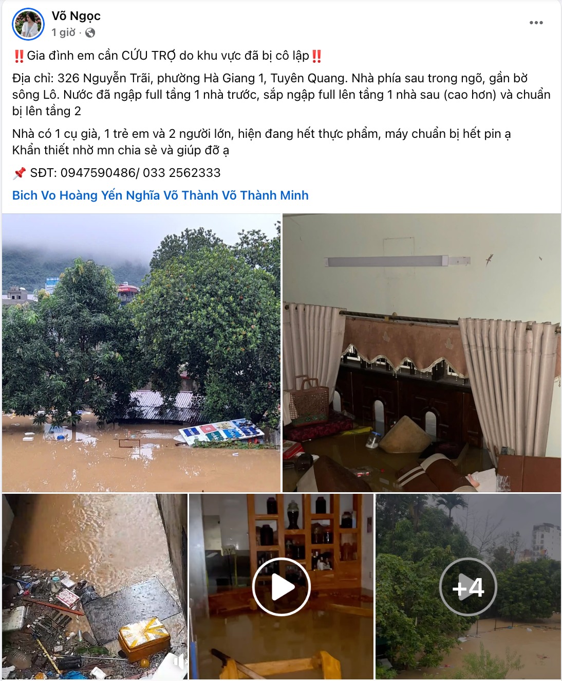 Không chỉ cầu cứu thoát thân, người dân còn tha thiết xin hỗ trợ lương thực, nước uống đưa tận nhà, bởi nhiều khu vực đã mất điện, điện thoại sắp cạn pin, nguy cơ mất liên lạc hoàn toàn.