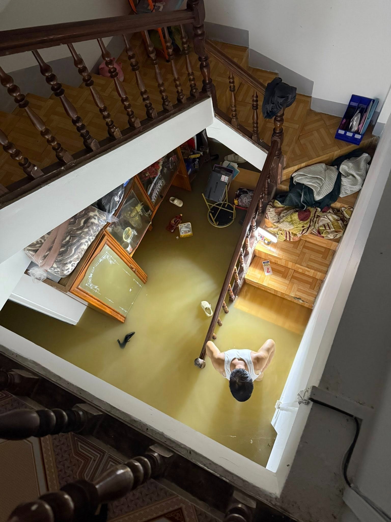 Nước dâng lên cao khiến nhiều hộ gia đình trở tay không kịp, bị mắc kẹt bên trong nhà. Theo chia sẻ của một số hộ dân cho biết, hiện nước đã ngập hết tầng 1 nguy cơ còn tiếp tục dâng cao.