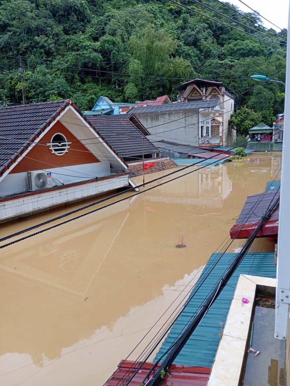 Nước lũ dâng cao khiến phường Hà Giang 1 và Hà Giang 2 ngập sâu, có điểm trũng, thấp nước ngập gần lên đến tầng 2.